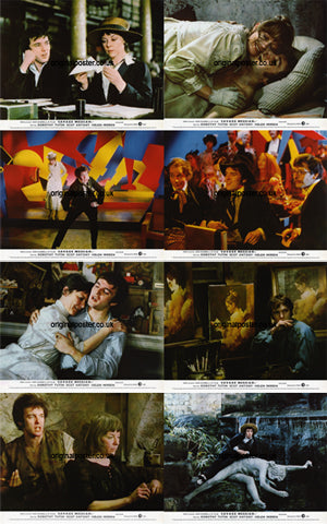 Set of 8 British cinema lobby cards from Ken Russel's 'X' certificate film for which Derek Jarman lent a hand in design.