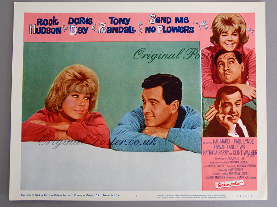 Lobby card no. 3 from 1964 featuring a wonderful photograph of Doris Day with Rock Hudson.