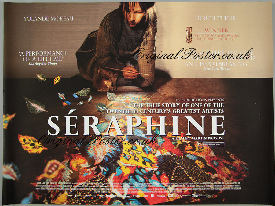 This is the true story of one of the 20th Century's greatest artists "Seraphine" played by Yolande Moreau. The film poster pictures the artist at work using the most unusual materials to produce the artwork. The film won scene French Academy awards including Best Picture and this is the British quad film poster which comes in double-sided rolled condition as printed in limited quantities for use in the light box of the cinema.