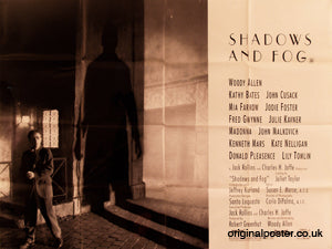 Woody Allen keenly observes that as his search for the strangler nears its climax he is found to be wearing shorts. Black and white poster for black and white film.