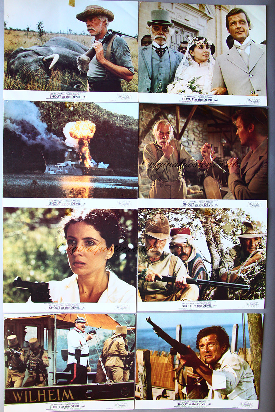Full set of eight UK lobby cards for 'Shout at the Devil' starring Lee Marvin and Roger Moore.