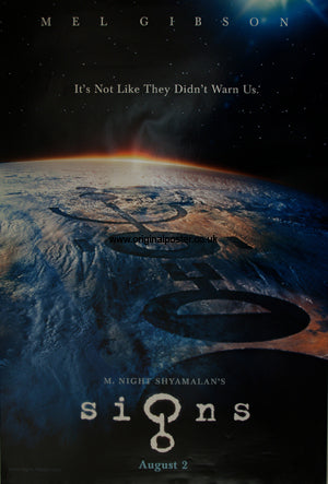 Rolled condition double-sided teaser poster for "Signs" produced in limited quantities for use in the cinema light box