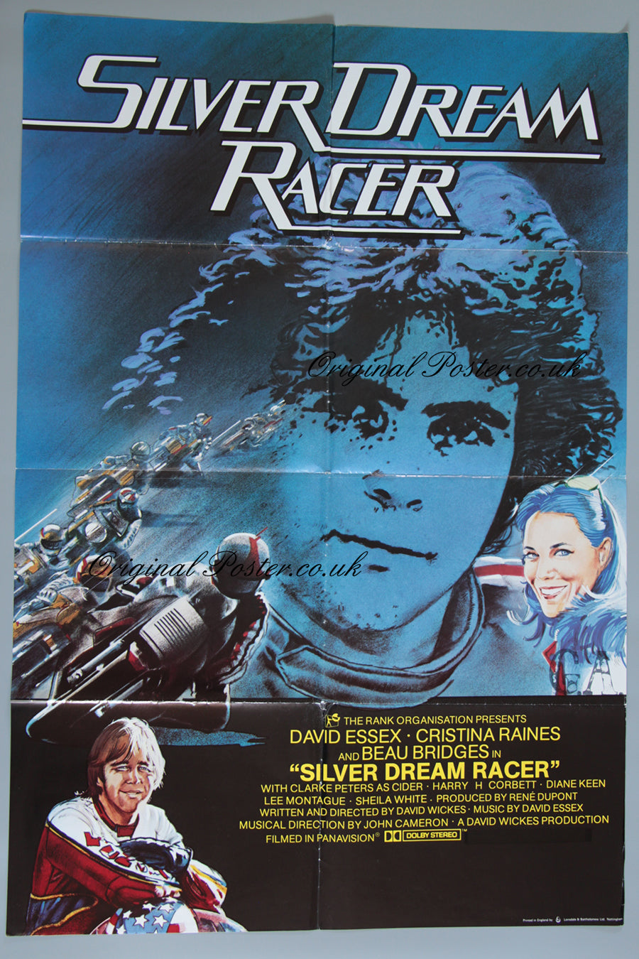 Superb 1980 first release British film poster picturing David Essex in the role of "Silver Dream Racer". Superb artwork of the singer racing motorbikes and dressed in leather. David Essex write the music for the film too. The film poster was printed in England by Lonsdale & Bartholomew of Nottingham. No pinholes.