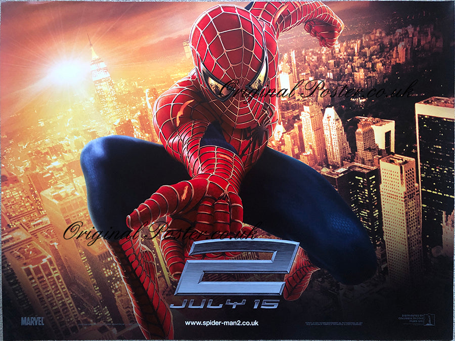 Double sided rolled Teaser Quad Style B for "Spider-Man 2" produced in limited quantities for the cinema lightbox.