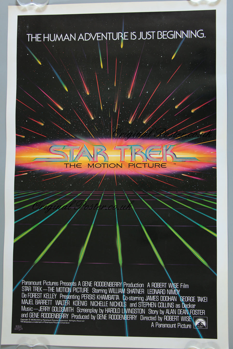 Advance foil special rolled film poster to announce the arrival of "Star Trek the Motion Picture" on the big screen. The artist's signature Roger Huyssen is to be found printed at the lower left corner and what really stands out is the magnificent foil artwork particularly on the title typography. This is in rolled condition with no pinholes having come directly to us from the cinema in New Zealand.