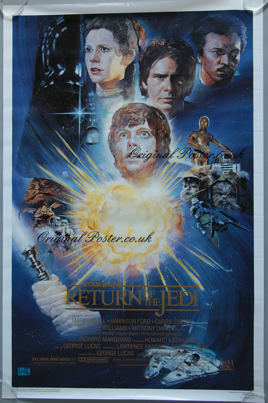 Special anniversary style "A" film poster for "Star Wars Return of the Jedi" with artwork by Kazuhiko Sano and released in 1994 - ten years after the first release by Killian Enterprises. This one is individually numbered with a printed number at the lower right of 000930. Rolled condition with no pinholes.