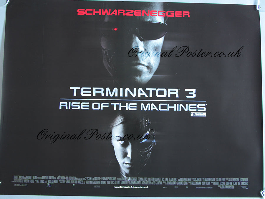 Double-sided and rolled British Quad film poster picturing Schwarzenegger as the Terminator.