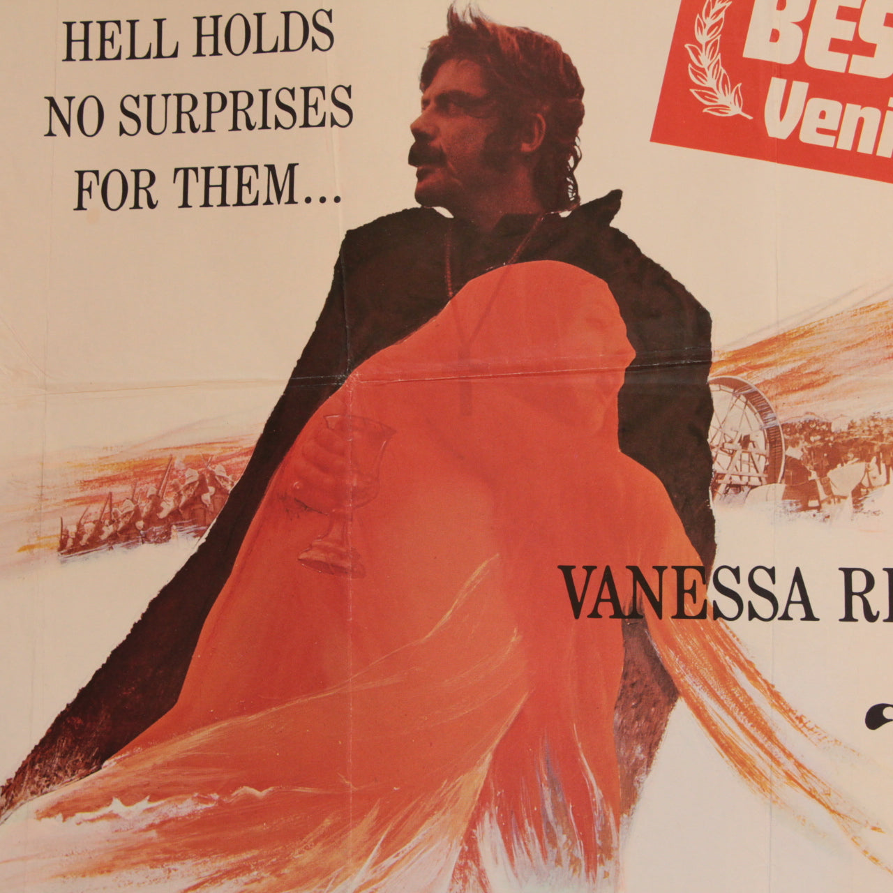This is the 1971 first release original film poster for Ken Russell's film "The Devils". The director adapted Aldous Huxley's "The Devils of Lodun" creating this frenzied and surreal hallucinogenic historical horror film which caused much controversy with Oliver Reed giving a controversial performance as the 17th century French priest and Vanessa Redgrave as the humpbacked nun. Printed in England by Lonsdale and Bartholomew portraying the Warner Bros. shield and A Kinney Leisure service. Clever Chantrell artwork reminiscent of The Witchfinder General. The film poster is in folded condition and has had a little help from us with restoration tape in a few areas to the reverse but is in good condition for a difficult to find film poster with such a lot of white in the background.
