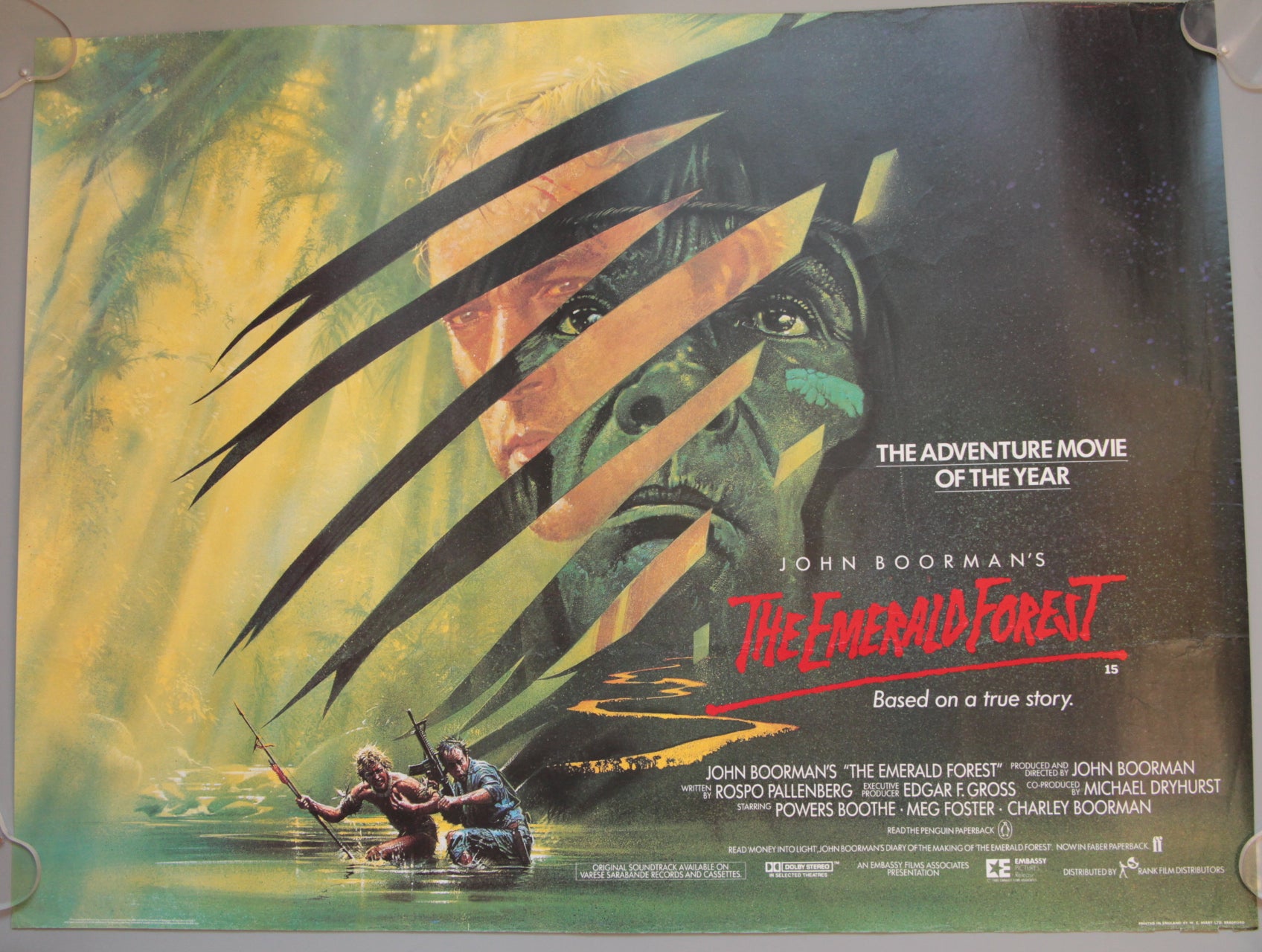 Rolled condition film poster with great artwork of the Amazon jungle. Beautifully photographed by Philippe Rousselot. Powers Boothe plays the father of the wild jungle boy who is in reality the son of the director John Boorman. Based on a true story the theme here is conservation. Superb colours for this original film poster in rolled condition as sent the the cinema in 1985 having been printed in England by W.E. Berry Ltd. of Bradford. Tiny bit of edge wear as seen at the very top border. No pinholes.