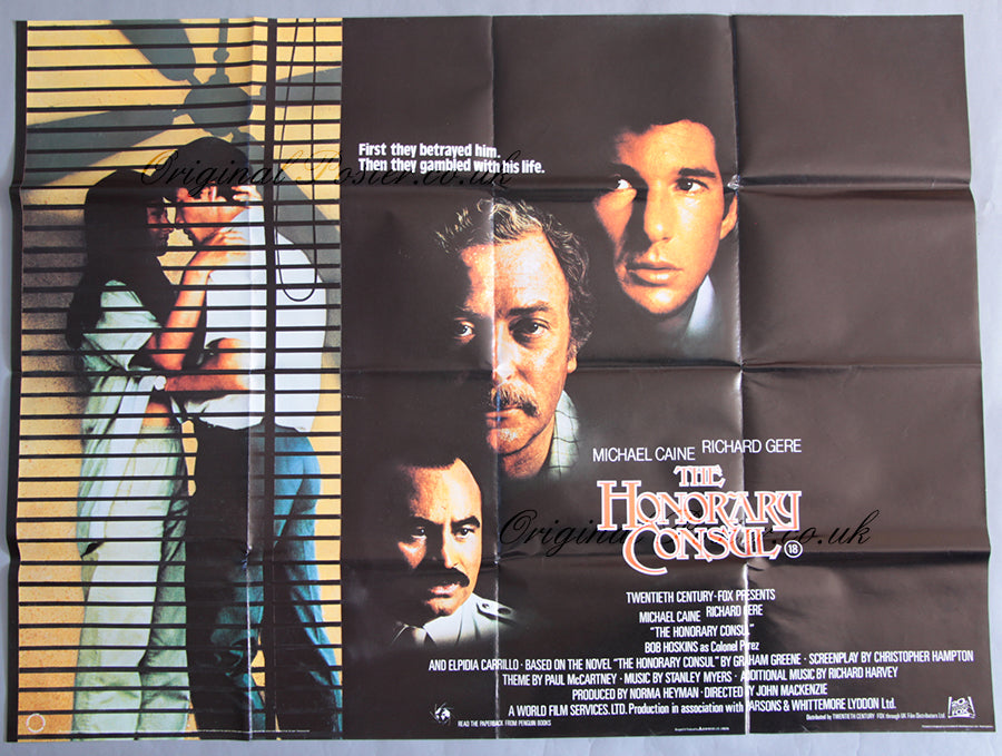 Sultry image of Richard Gere playing the role of a doctor plus Michael Caine and Bob Hoskins pays a Police Chief from the novel by Graham Greene . Printed by Lonsdale & Bartholomew.
