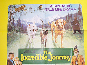 A great true-life adventure with a bull terrier, a Labrador and a cat making their way across the Canadian Wilderness to be re-united with their owners. Superb full colour poster for arguably the best Walt Disney true life adventure ever. Their encounters with the grizzly bear and the mountain lion are portrayed. This poster features printers details plus the N.S.S. details. This film was very popular and released many times this film poster being from a re-release but having the colour which the first release one lacked.