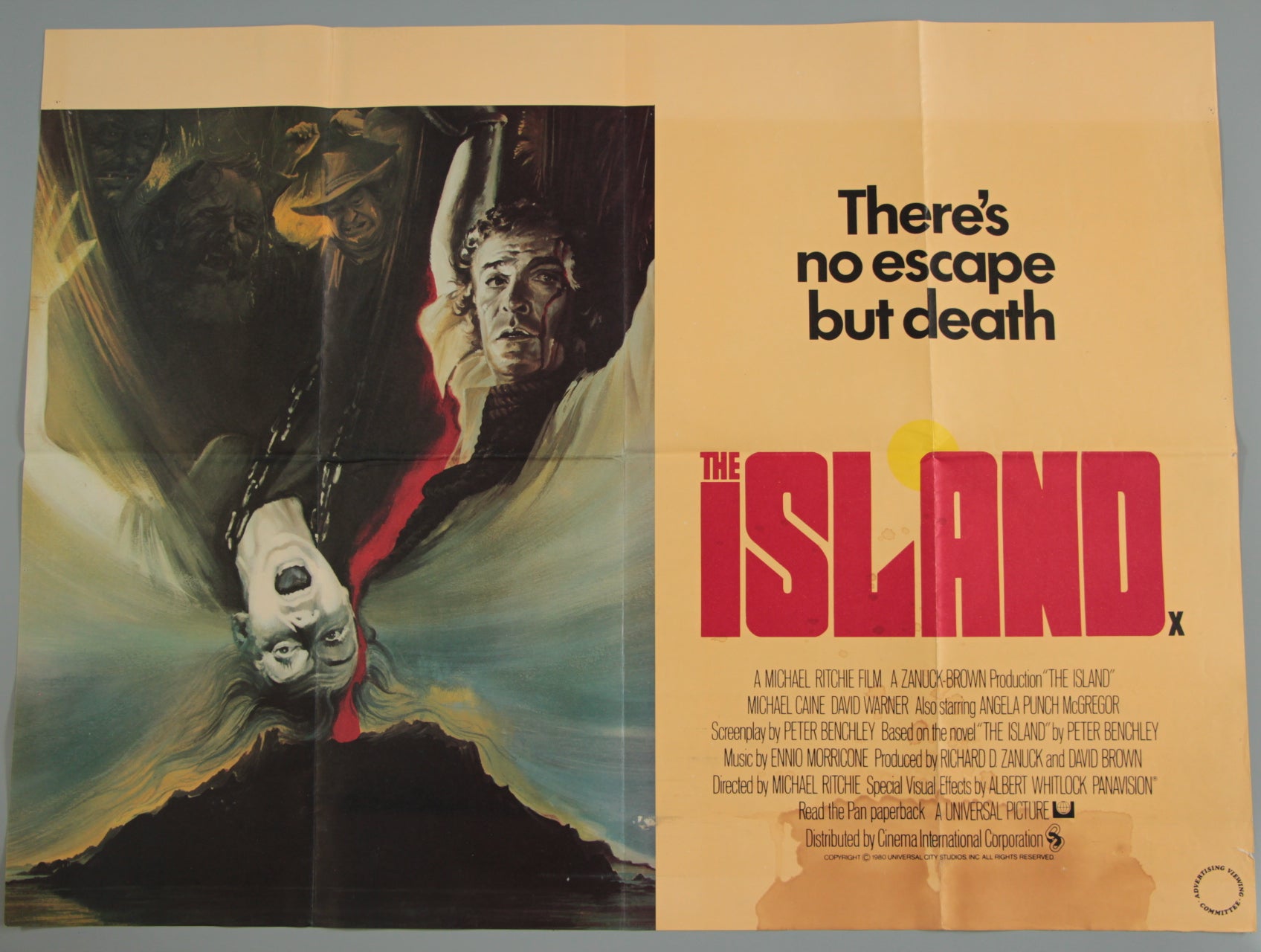 This first release X certificate 1980 film poster from the author of 'Jaws' and 'The Deep'. Music by Ennio Morricone. The folded poster has no pinholes but does have historic water staining on the reverse which shows through at the bottom right by the credits.