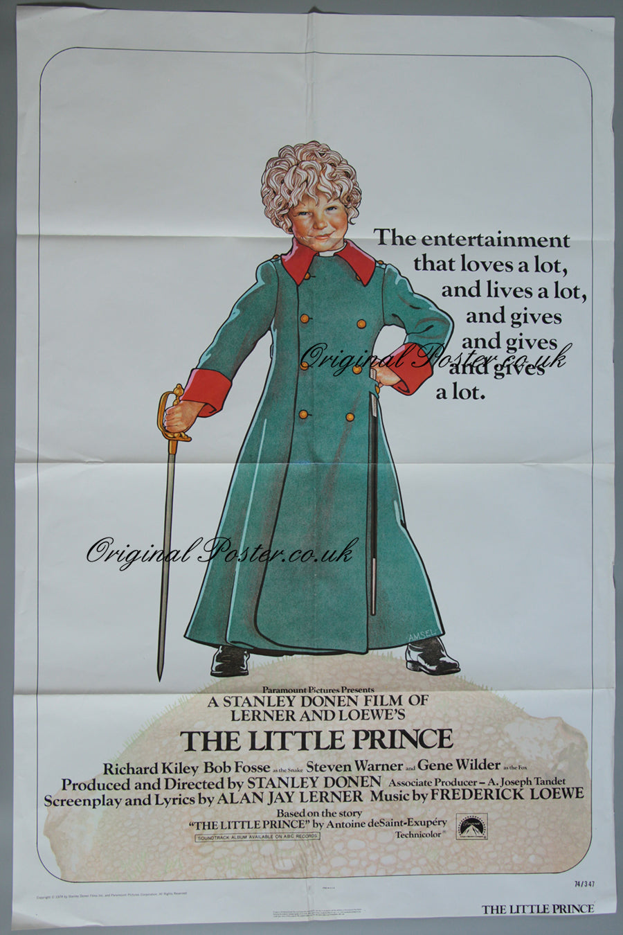 Detailed artwork by Richard Amsel featuring his printed name at the foot of the great coat worn by the Little Prince played by Steven Warner. This first release 1974 litho printed film poster is in excellent condition with no pinholes.