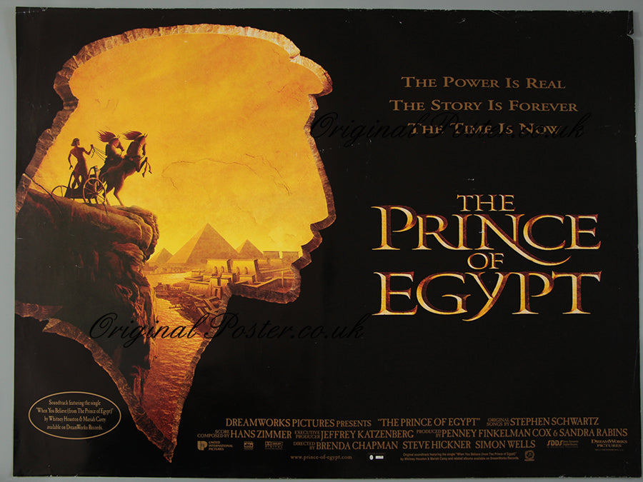 Rolled condition double-sided UK Quad film poster from 1998 for "The Prince of Egypt" animated film from Dreamworks opening to great critical acclaim and here is the film poster printed in limited quantities for use in the cinema light box. Great pictorial image of Egypt for this film which was based on the story of Moses. A few blemishes as seen, the main one being at the mid-centre.