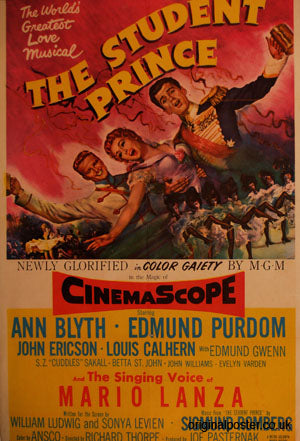 This is the original 1954 US One-sheet featuring "COLOR GAIETY in the Magic of CinemaScope". Bright colours and good paper quality with a tiny piece of paper-loss at the foot of the "M" as seen on the lower centre cross fold. The film features the singing voice of Mario Lanza and tells the story of a prince who falls in love with a bar maid. Nicks at the top border.