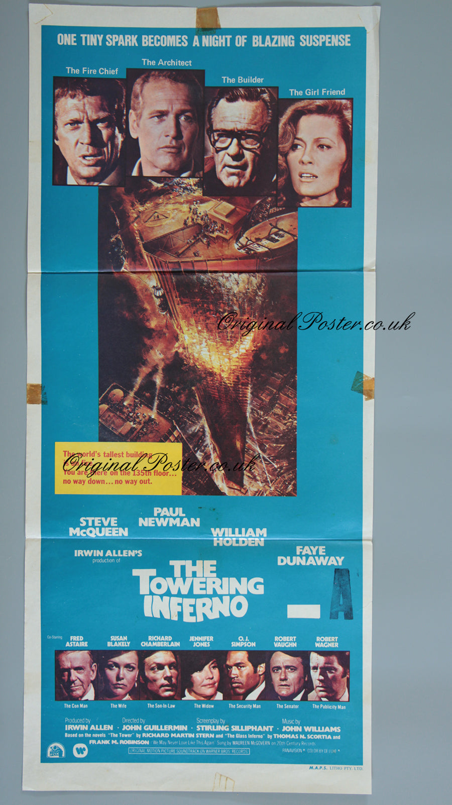 Steve Mc Queen as Fire Chief Michael O'Hallorhan, Paul Newman, William Holden, Faye Dunaway, Fred Astaire, Richard Chamberlain.