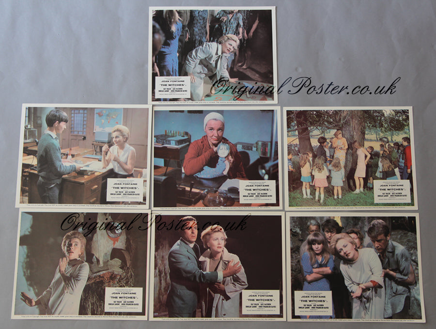 Hammer horror first release British cinema front of house lobby cards from 1966. Joan Fontaine (first seen in Rebecca) is pictured as the cursed school mistress discovering devil worship in the country. Written by Nigel Kneale who created Quatermass.