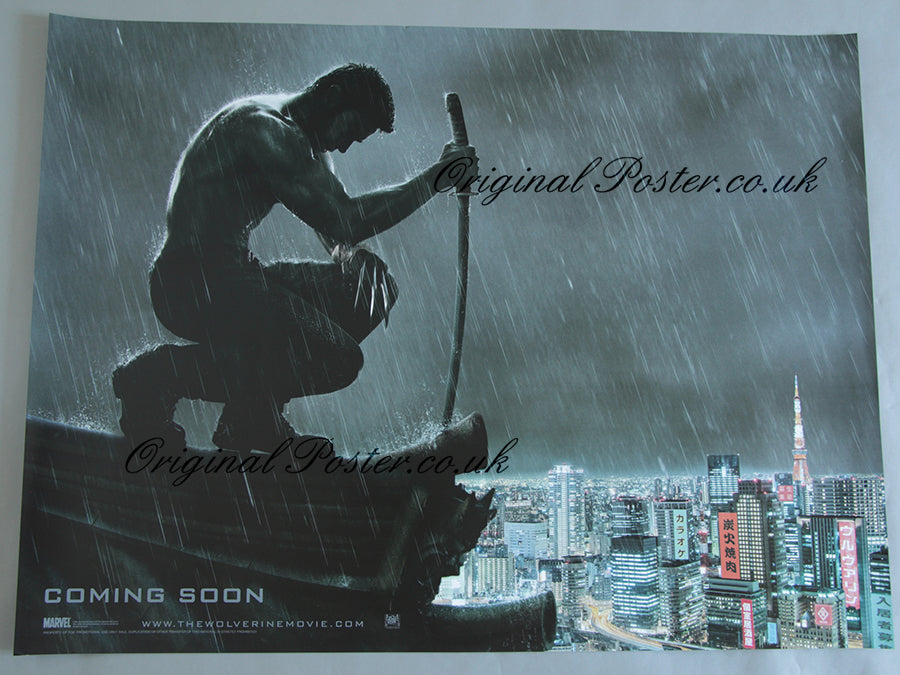 Double-sided rolled UK Quad featuring the Wolverine with adamantium claws out and samurai sword in hand. Modern day Japan is featured in the stunning back drop.