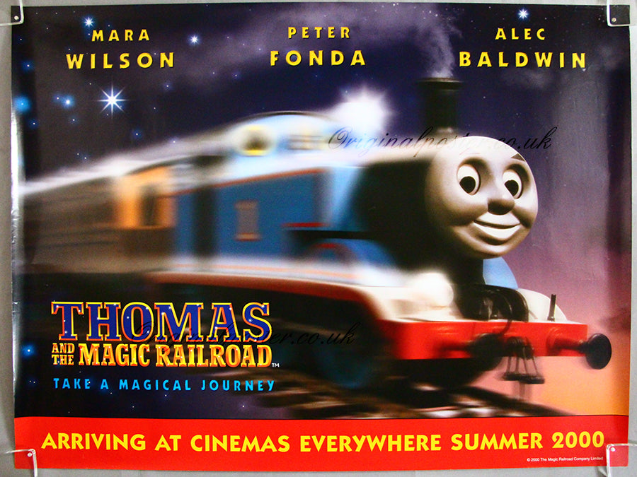 "Thomas and the Magic Railroad" teaser British Quad in rolled double-sided condition featuring Thomas the Tank Engine racing along the track with a smile on his face.