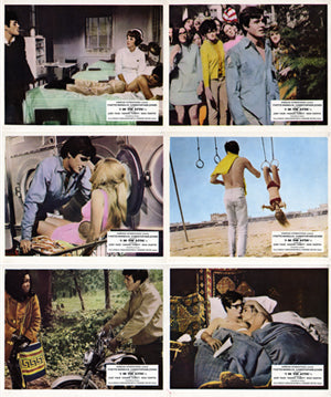 Six British cinema front of house cards from the 'swinging sixties' with pinholes in the corners.