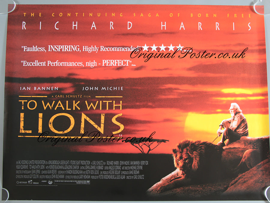 Excellent rolled condition cinema poster from the year 2000 picturing Richard Harris with his magnificent companion the lion. This is the continuing story of 'Born Free' and pictures the savannah complete with beautiful sunset.