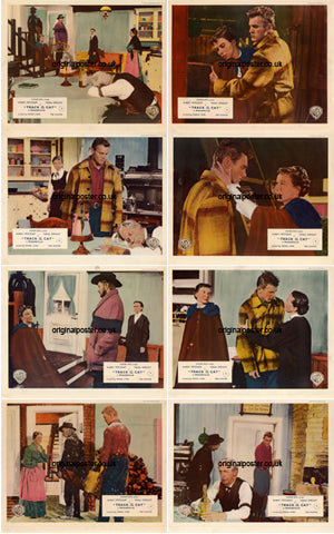 Fine old Warner Brothers set of 8 colour British cinema lobby cards from the 1954 Western filmed in CinemaScope. Printed in England by Waterlow & Sons Ltd.