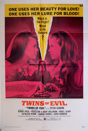 Hammer one-sheet from the US original 1972 release. Playboy magazines first twin centrefold featured the two female stars pictured here and the theme is to guess which one is the vampire and which is the virgin.