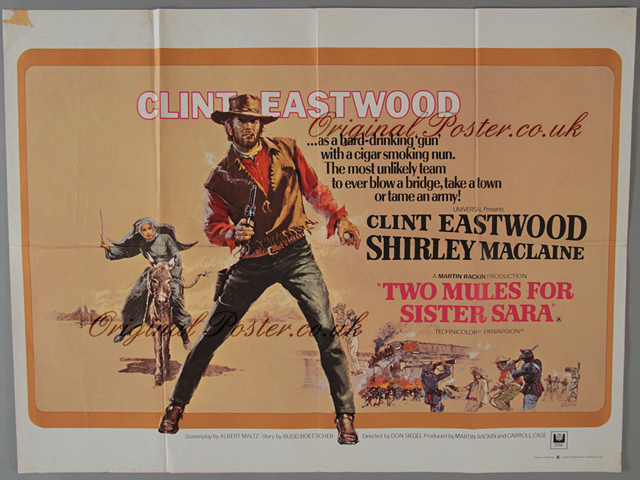 Shirley MacLaine plays the part of the nun giving a wonderfully light hearted performance allowing her habit to slip as the film progresses. Clint is the rather bemused cowboy hero here who rescues the lady in fine style. Don Siegel directs a great movie here and the poster reflects well the perfect pairing of the leads. This poster has had repaired paper infills to the corners and reinforced cross folds all of which would frame out.