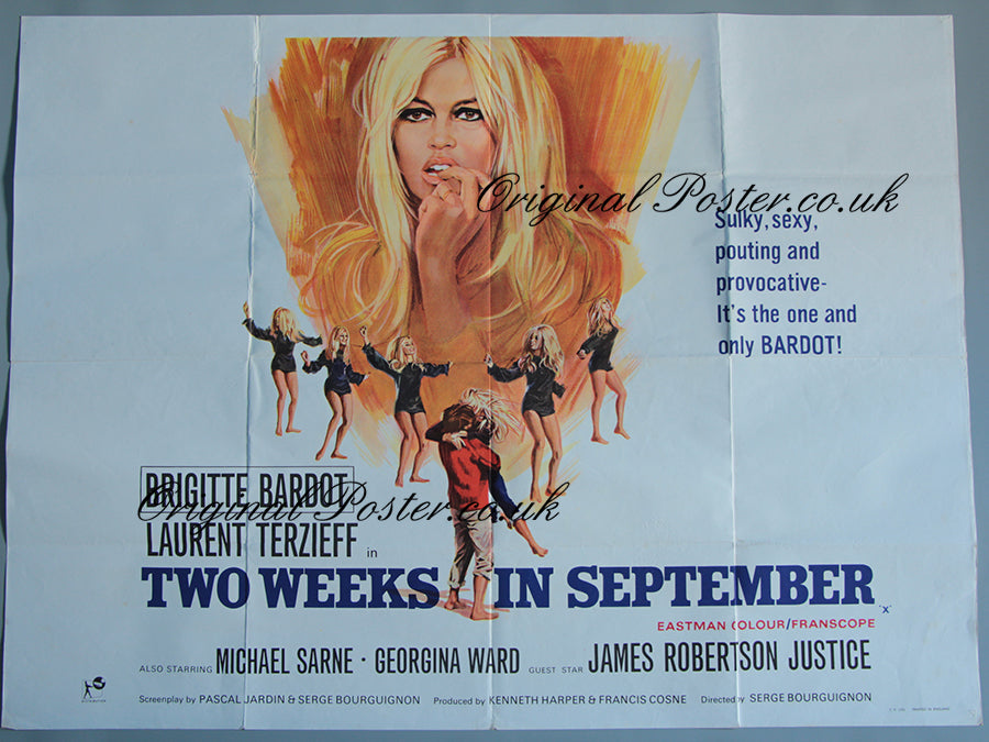 Fantastic artwork depicting a sultry sexy looking Brigitte Bardot together with six full length portraits in addition - and sorry did we forget to mention Laurent Terzieff! This first release British quad film poster from 1967 was printed by T.P. Ltd in England.