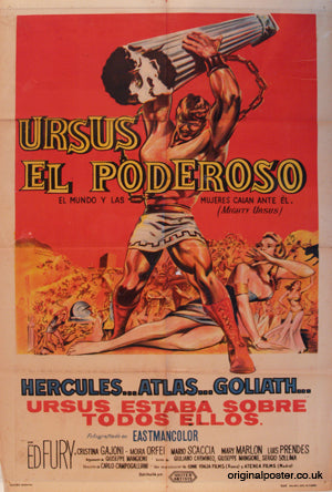 Stone litho artwork featuring "Hercules...Atlas...Goliath...", two snag lines have been archivally repaired.