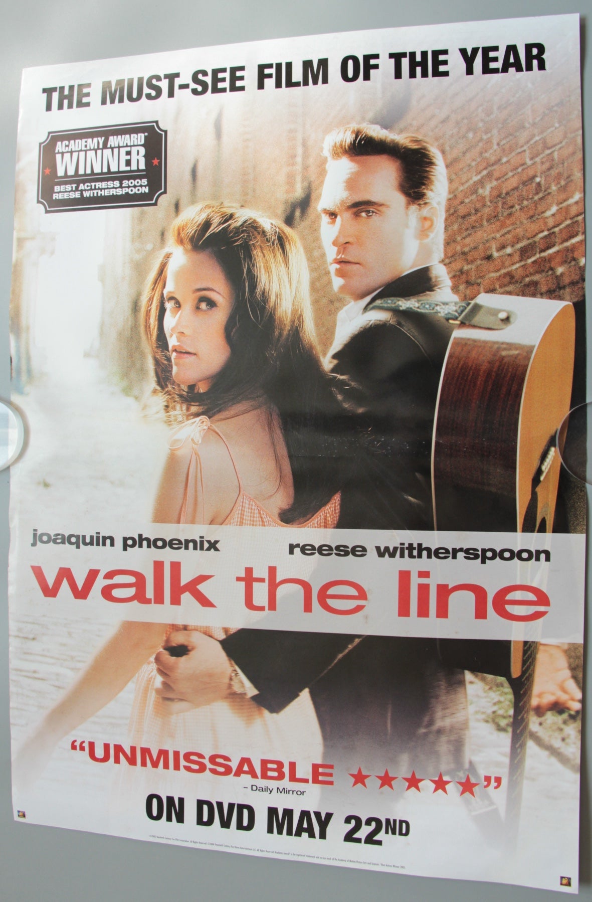 Rolled condition DVD poster for "Walk the Line" from the year 2005. Joaquin Phoenix is incredible as Johnny Cash together with the equally talented Reese Witherspoon in the role of June Carter.