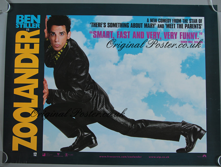 Pictured is the director and star of the film Ben Stiller the king of the male modelling world with a "Blue Steel" stare that earns him a fortune. Excellent film with many surprise cameos even including David Bowie. Rolled condition double-sided British Quad film poster printed in limited numbers for use in the cinema lightbox with a tiny amount of creasing including a tiny tear at the bottom left border as seen.